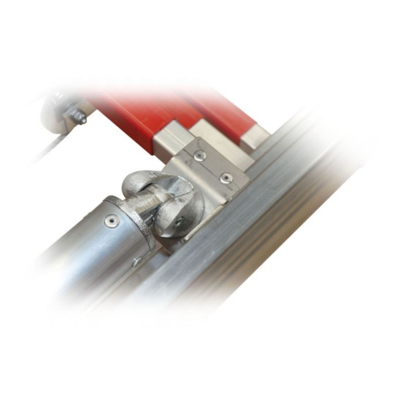 - lestev je opremljena z aluminijastimi podpornimi stabilizatorji in stenskimi koleščki na vrhu lestve.