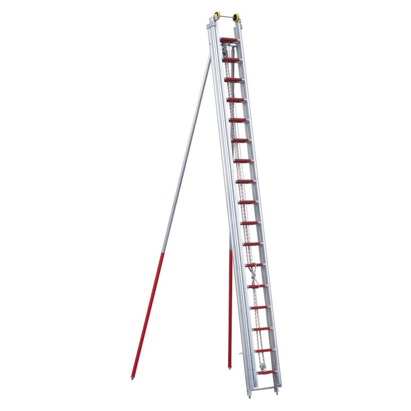 - lestev je dobavljiva tudi kot dvodelna gasilska lestev z podporniki in varovalno vrvjo