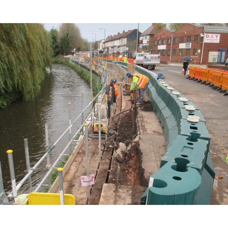 Protipoplavna pregrada Floodstop višine 0,9 m je robusten in učinkovit sistem za zaščito pred poplavami. Pregrado je mogoče sestaviti na poljubno dolžino in jo postaviti tako, da ustreza smeri in odpiranju. Z lahkoto dve osebi hitro namestita sistem. Pogosto jo uporabljajo gradbena podjetja ali gospodarske službe, da bi zaščitili sredstva pred poplavnim tveganjem.
